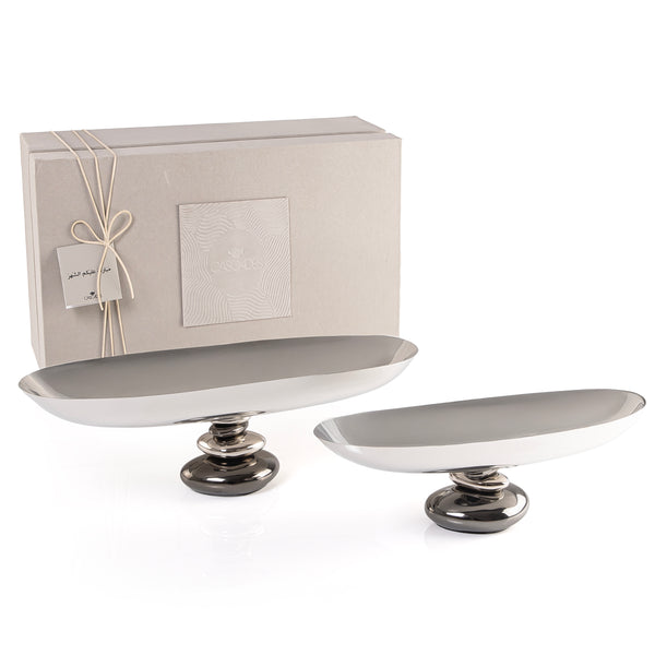 ستاند للتقديم معدن بيضاوي - فضي كبير