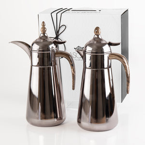 طقم 2 مطارة ستانلس 1 لتر بوكس هدايا - فضي غامق