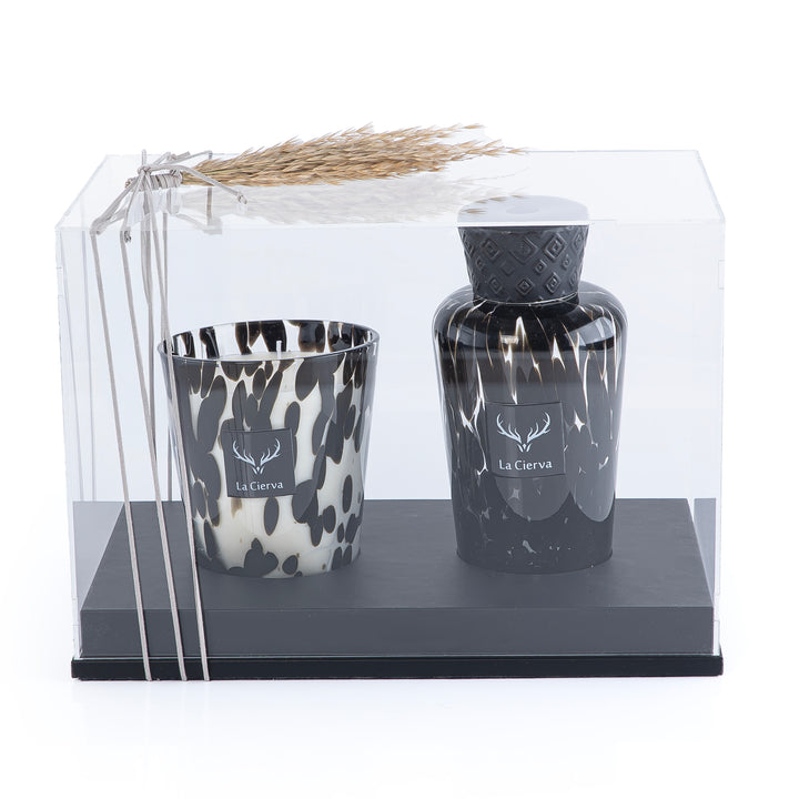طقم مكون من شمعة و ديفيوزرSilence Forest الاسود من لاسيرفا مع بوكس اكريليك