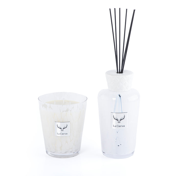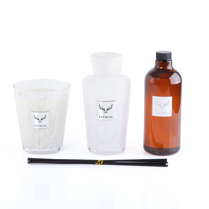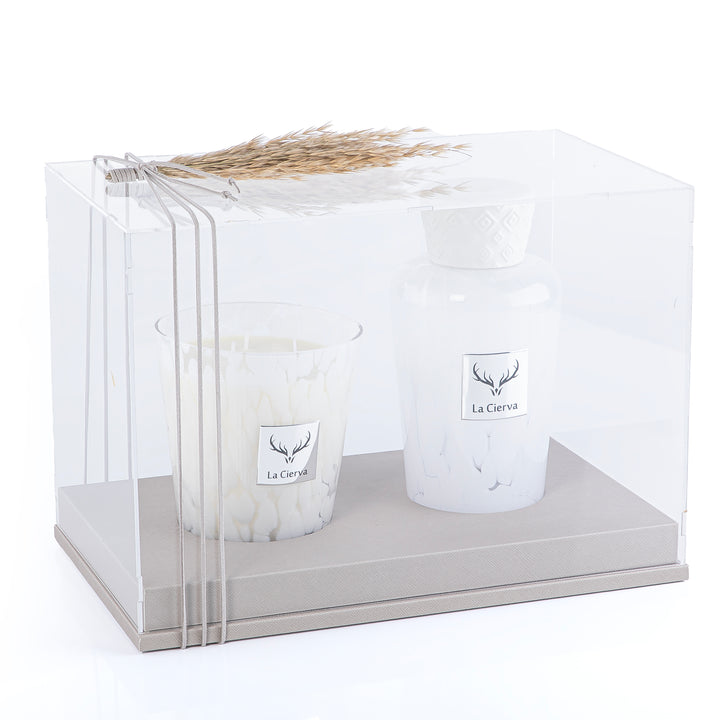 طقم مكون من شمعة و ديفيوزر Peace of mind -الابيض من لاسيرفا مع بوكس اكريليك