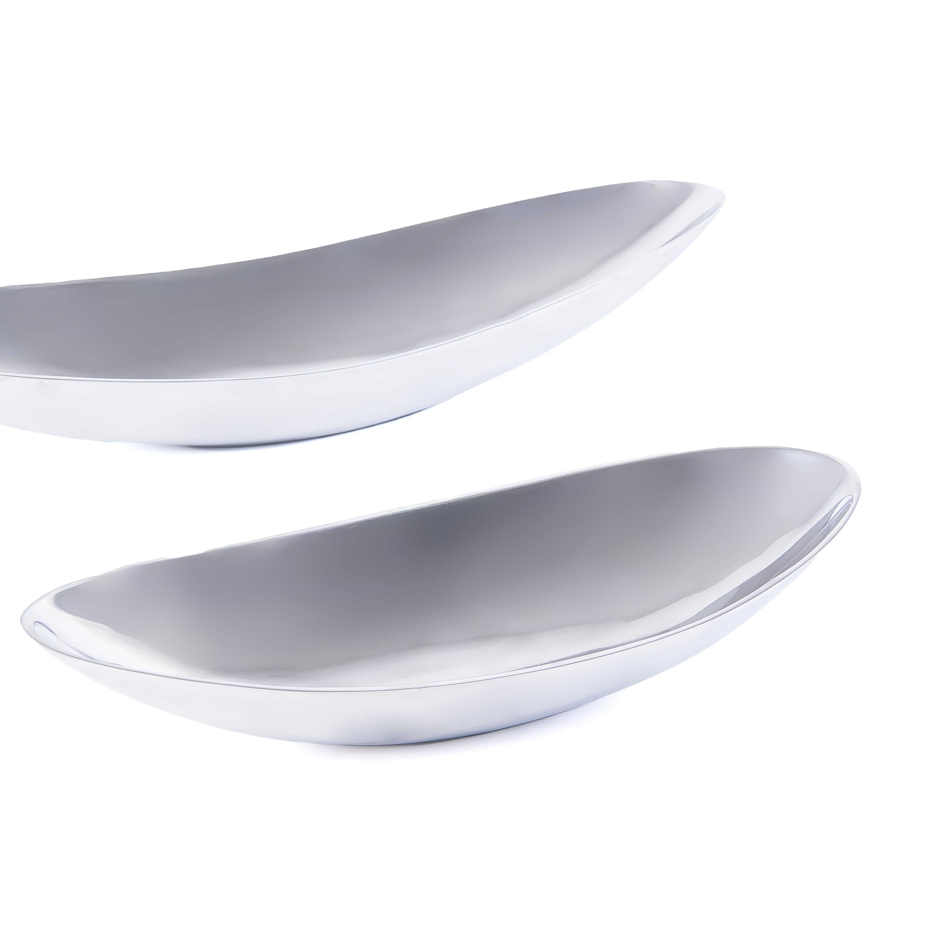 ارتقِ بتقديم مائدتك مع هذا الطقم الأنيق من طبقين تقديم معدنيين بيضاويين بلمسة فضية لامعة. يتميز التصميم برقي بسيط يجعله مناسبًا للاستخدام في العزائم الرسمية وكذلك في التقديم اليومي.