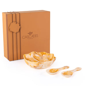 طقم من وعاء تقديم صغير من الراتنج مع ملعقتين مع بوكس هدايا – عنبر