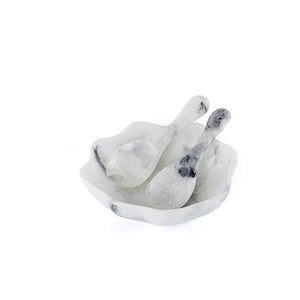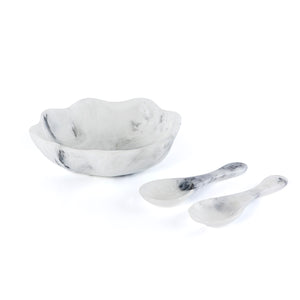 طقم من وعاء تقديم صغير من الراتنج مع ملعقتين مع بوكس هدايا – أبيض و أسود