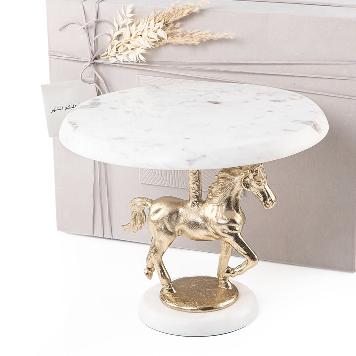 ستاند رخام أبيض وذهبي مع بوكس هدايا