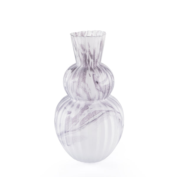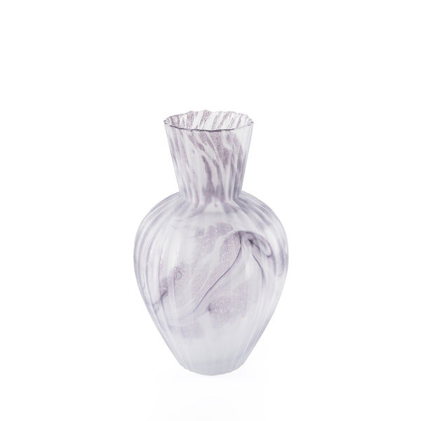 مزهرية زجاجية بتصميم رخامي – بنفسجي فاتح