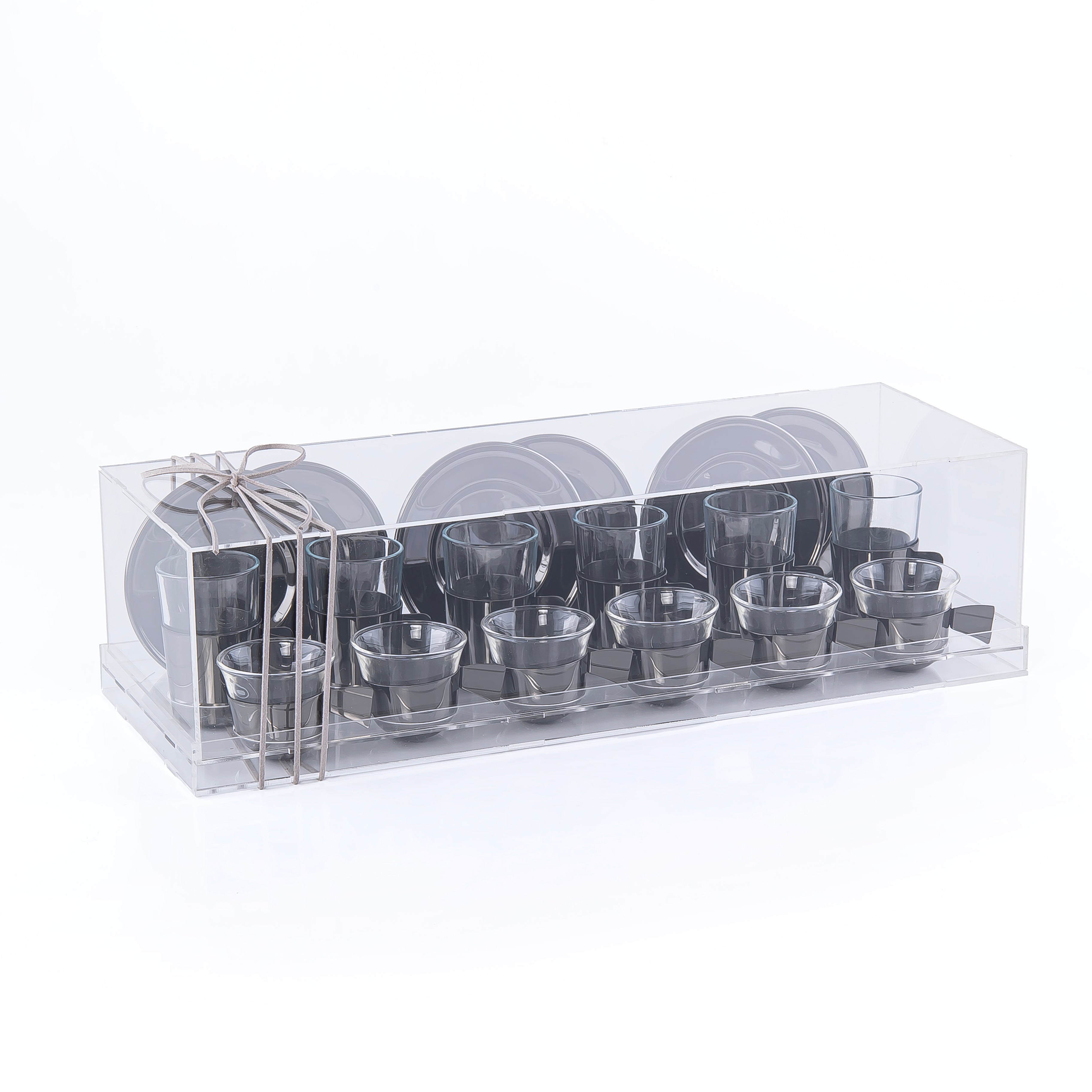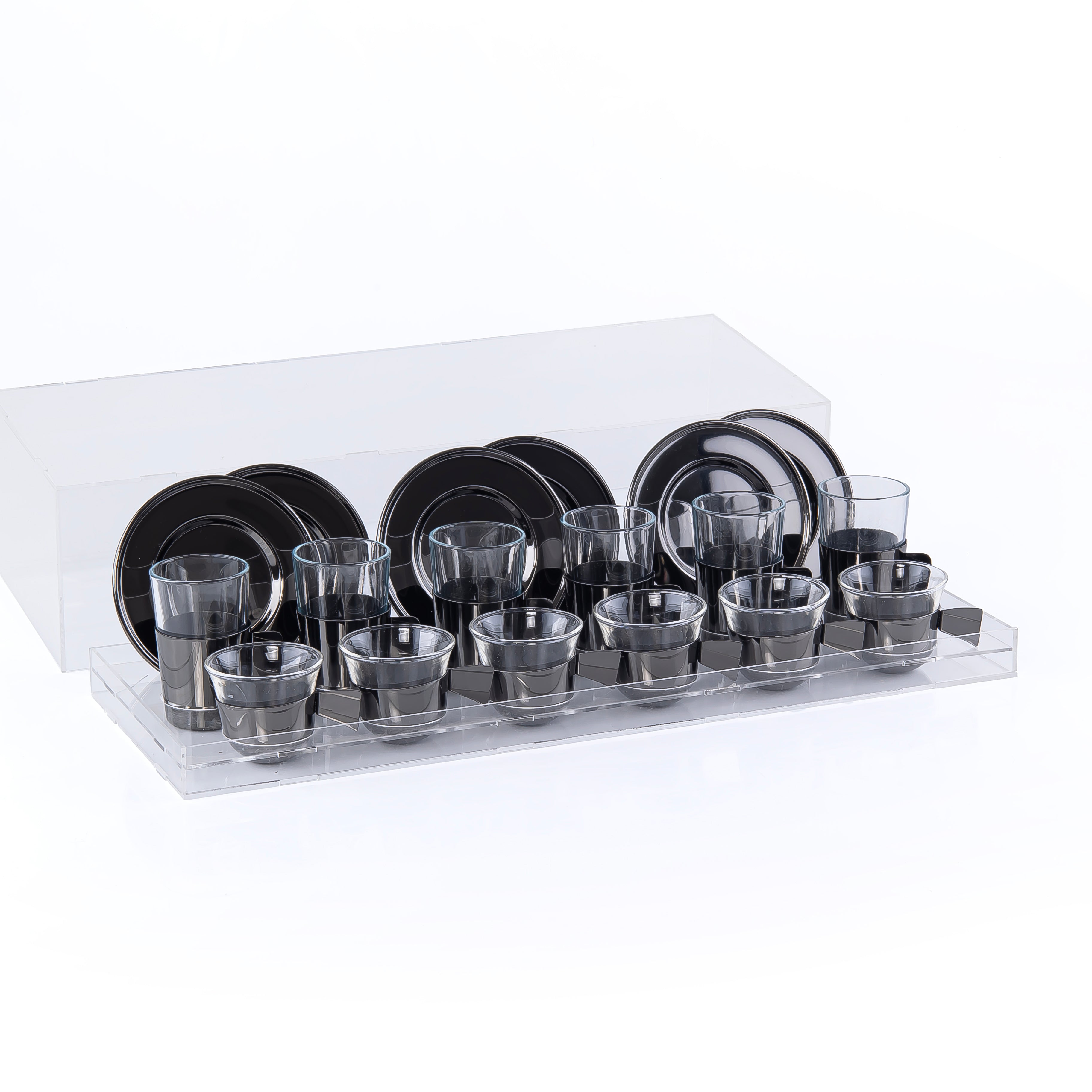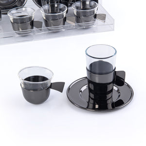 طقم مكون من 6 إستكانات و 6 فناجين قهوة مع 6 أطباق وبوكس أكريليك - أسود
