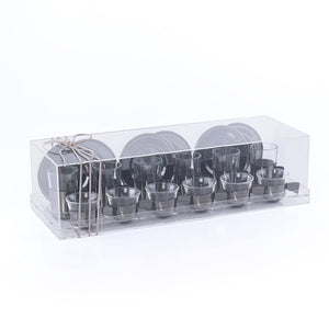 طقم مكون من 6 إستكانات و 6 فناجين قهوة مع 6 أطباق وبوكس أكريليك - فضي