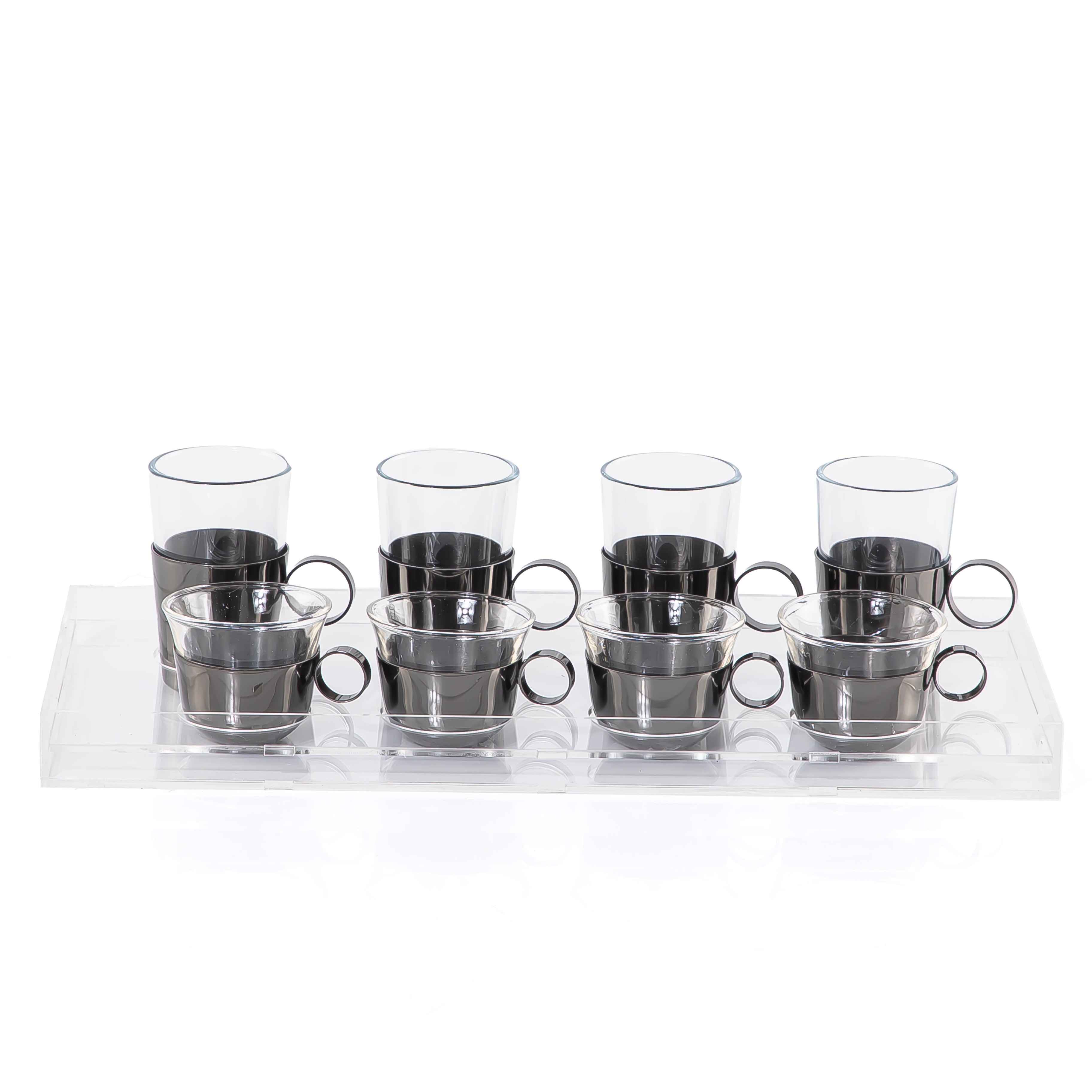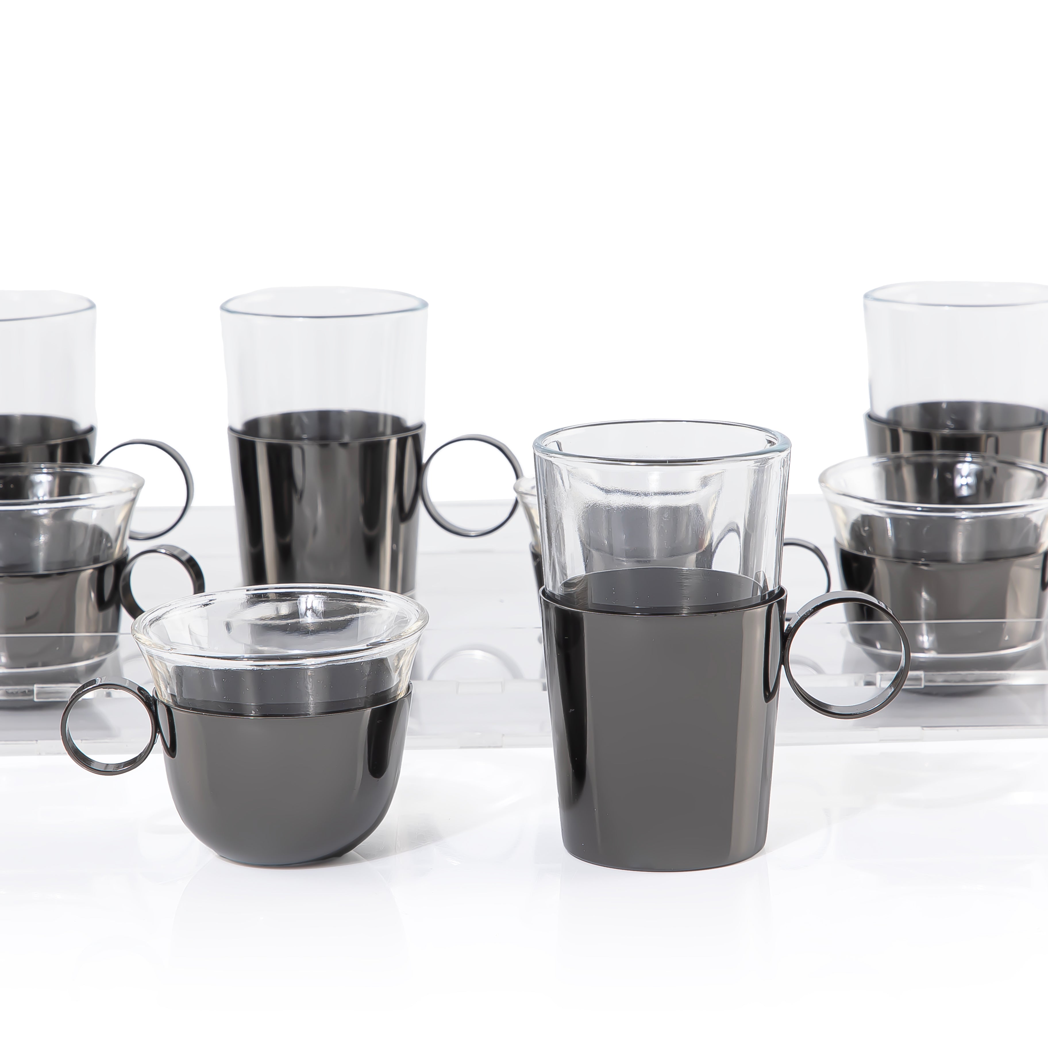 اختر الخيار: Set of 4 pcs tea stikana and 4 Arabic coffee cups - black
