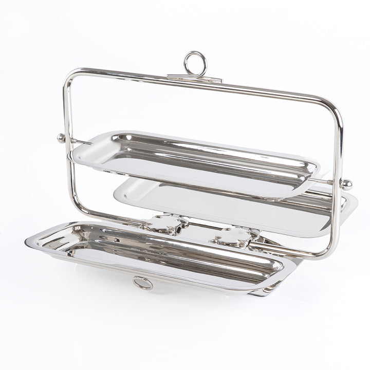 حامل تقديم من الفولاذ المقاوم للصدأ بثلاث طبقات مرتفعة، يوفر تصميمًا عمليًا لعرض منظم.
