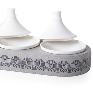ستاند بيضاوي جلد مع 3 وعاء سيراميك