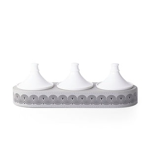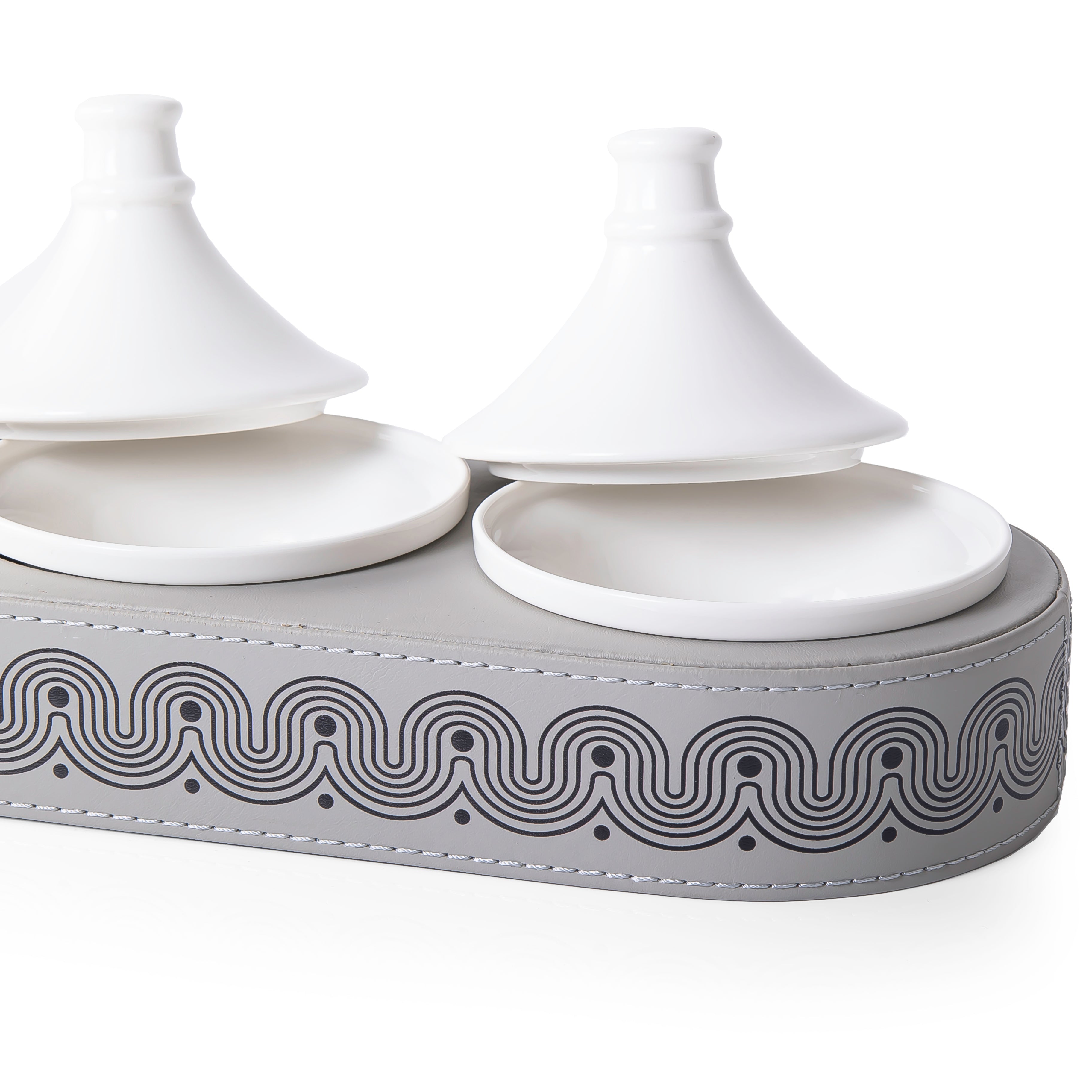 اختر الخيار: ستاند بيضاوي جلد مع 3 وعاء سيراميك