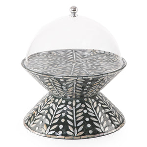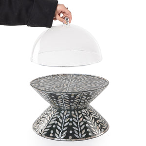 ستاند تقديم الكيك الدائري من الصدف وجهين مع غطاء أكليريك - أسود كبير