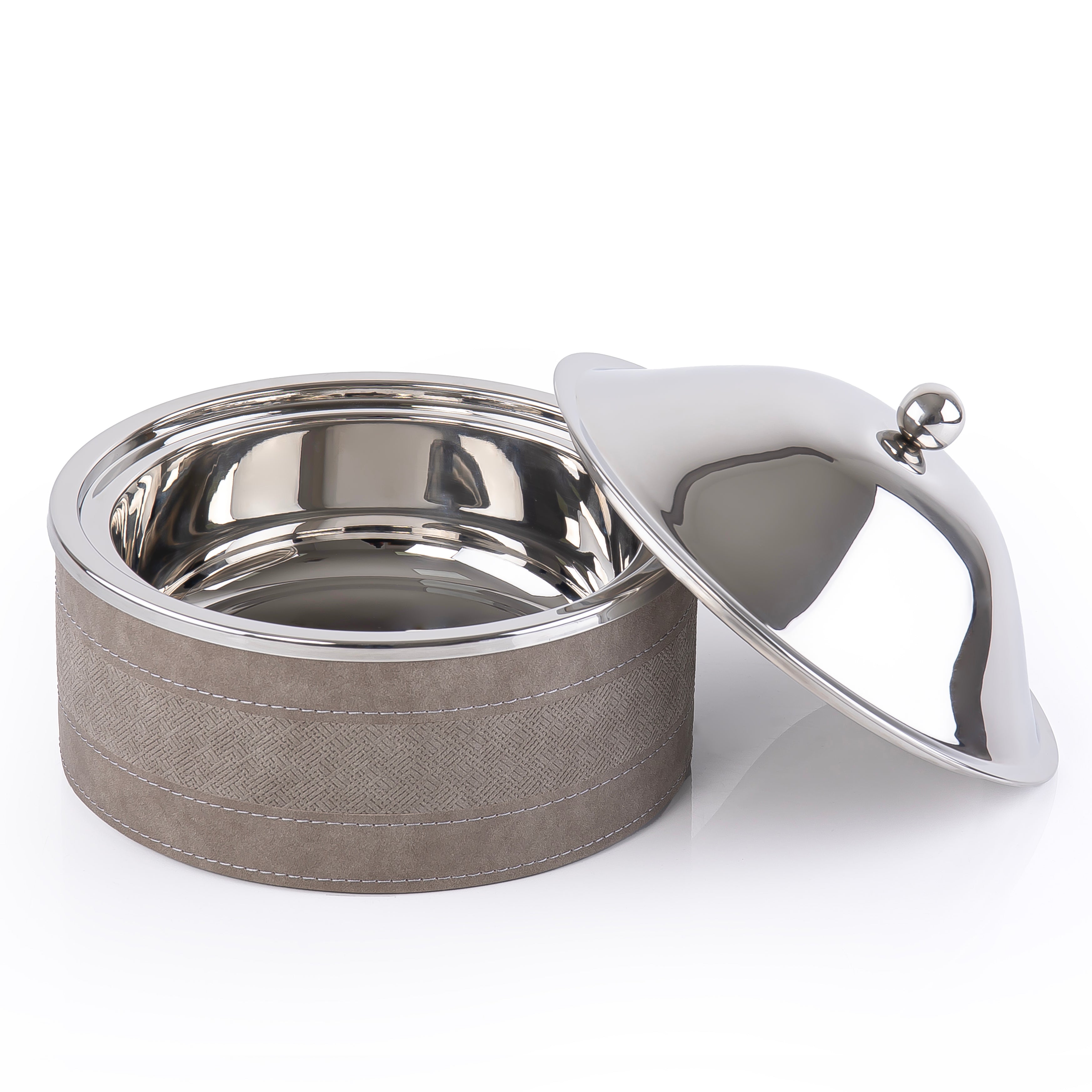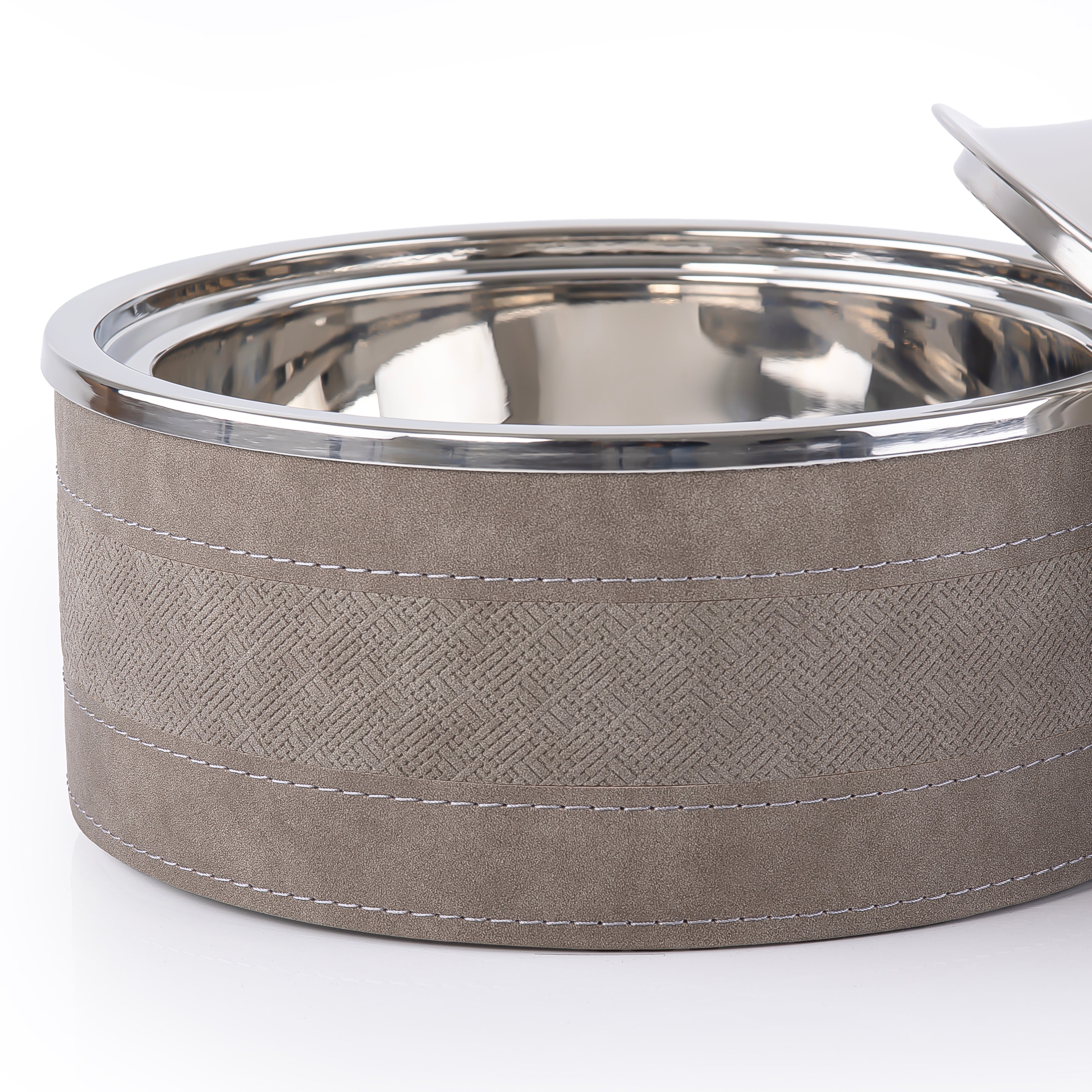 حافظ على إبداعاتك في الطهي بأناقة راقية. تجمع حافظة الحرارةالمصنوعة من المعدن المغطي بالجلد المتينة هذه بين الحرفية العالية والوظائف العملية، حيث تحافظ على درجة حرارة مثالية لأطباقك طوال فترة التقديم. يضفي الجلد البني الغني لمسة من الرقي الخالد، بينما يضمن العزل الممتاز بقاء طعامك دافئًا تمامًا. إضافة أساسية لأي مطبخ أنيق، تجمع بين الجمال والأداء الموثوق به لتلبية احتياجات المضيف العصري.