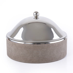 حافظ على إبداعاتك في الطهي بأناقة راقية. تجمع حافظة الحرارةالمصنوعة من المعدن المغطي بالجلد المتينة هذه بين الحرفية العالية والوظائف العملية، حيث تحافظ على درجة حرارة مثالية لأطباقك طوال فترة التقديم. يضفي الجلد الرمادي الغني لمسة من الرقي الخالد، بينما يضمن العزل الممتاز بقاء طعامك دافئًا تمامًا. إضافة أساسية لأي مطبخ أنيق، تجمع بين الجمال والأداء الموثوق به لتلبية احتياجات المضيف العصري.