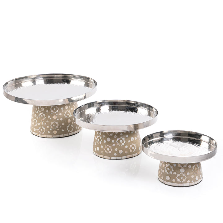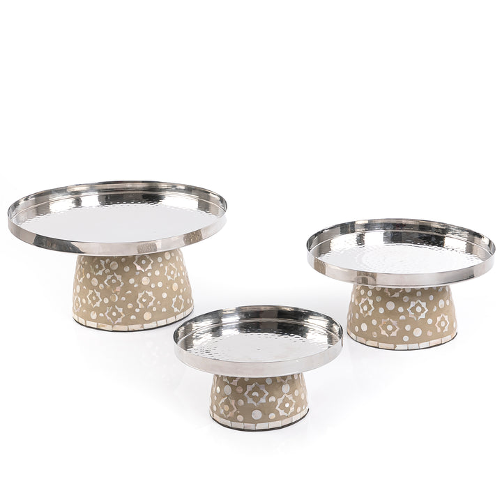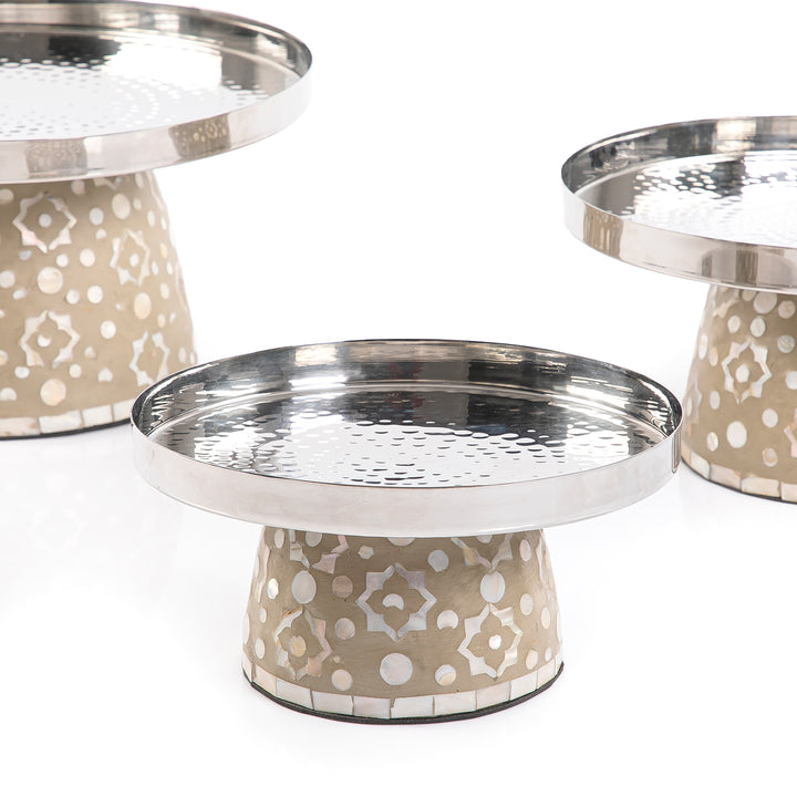 قدمي لضيوفك ألذ الأطباق بشكل يعكس فخامة اختياراتك باقتناء طقم استاندات المعدن. ذات تصميم جمالي مذهل للغاية. مصنوع من خامات عاليه الجوده لضمان الاستدامه وآمنه للطعام كما أنها متينة وسهلة التنظيف ذات قاعده صدف راقيه مما يجعلها قطعة فريدة لاغنى عن اقتنائها