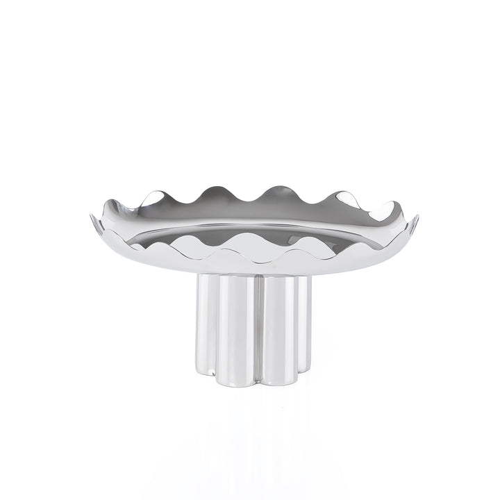 ستاند للتقديم معدن دائري بحواف متعرجة - فضي صغير