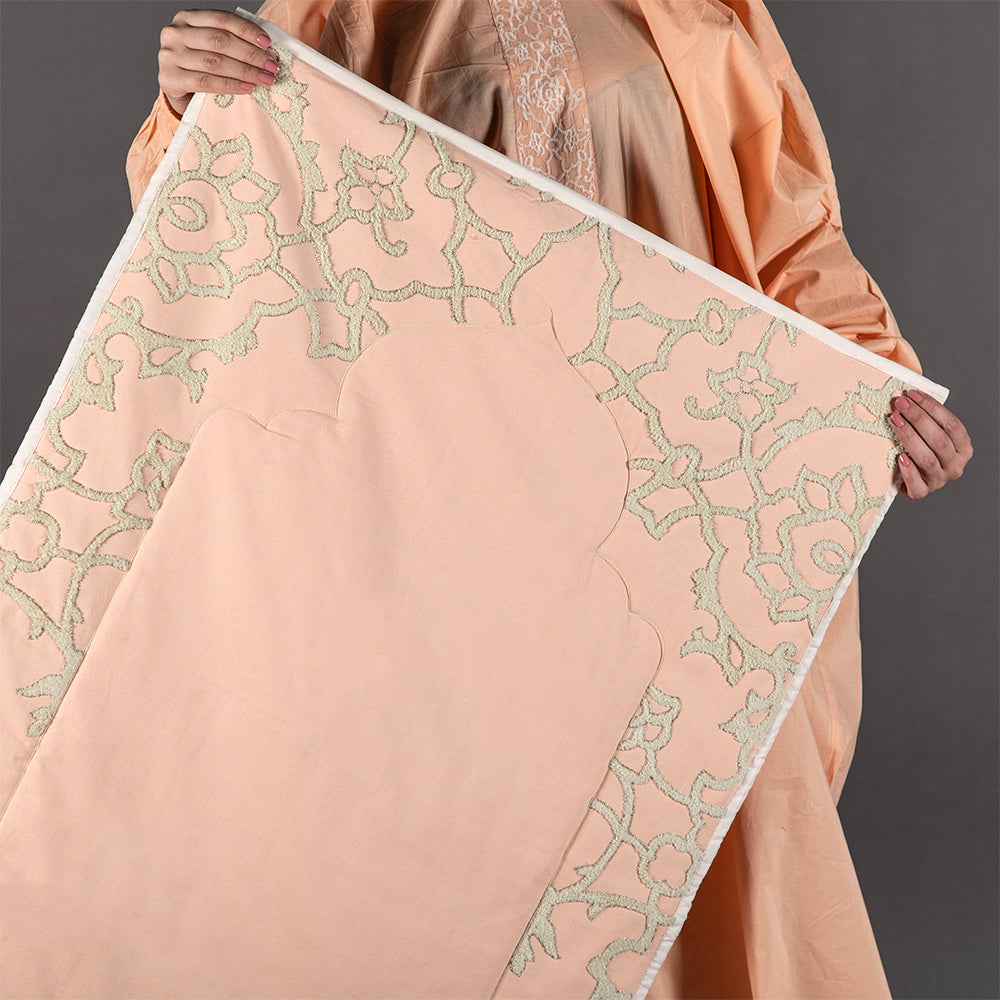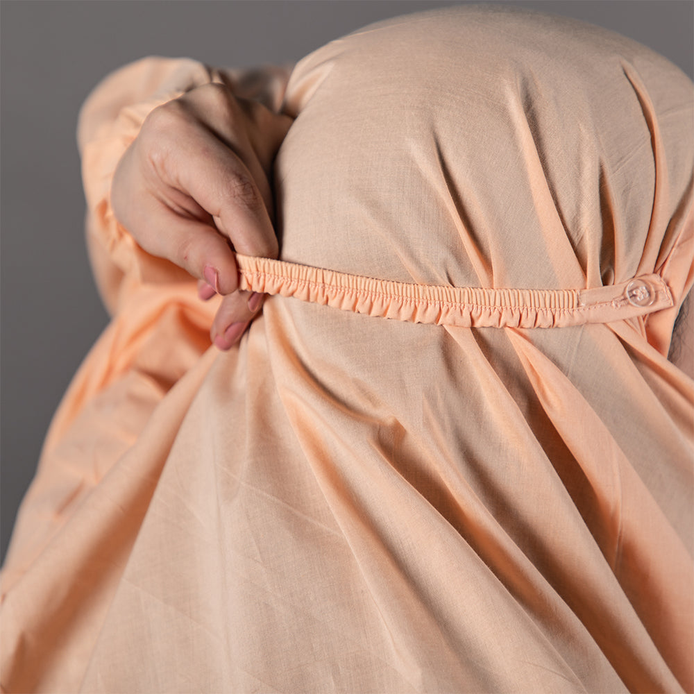 ثوب الصلاة يجمع بين الراحة التامة والأناقة المحتشمة، مصنوع من 100% قطن فاخر، ليمنحكي خفّة ونعومة في كل حركة. تصميم مثالي يغطيكي بالكامل مع مقاسات مريحة تناسب جميع الأذواق، تتضمن المجموعة أيضًا سجادة صلاة مصنوعة من القطن الفاخر. تتميز السجادة بنقوش وحواف ذات ألوان هادئة أنيقة تعزز سكينة روحك في الصلاة، وحشو بوليستر ناعم لتوفر مزيدا من الراحة، وخامات عالية الجودة تحافظ على جودتها بعد كل غسلة.