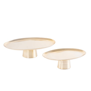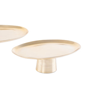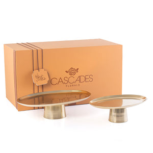 طقم 2 ستاندات تقديم بيضاوية من المعدن مع بوكس - ذهبي