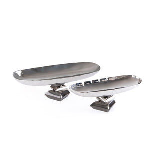 Home طقم مكون من 2 ستاند تقديم بيضاوي معدن مع بوكس هدايا - فضي