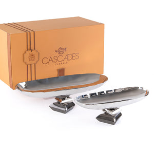 طقم مكون من 2 ستاند تقديم بيضاوي معدن مع بوكس هدايا - فضي