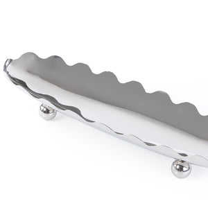 ستاند للتقديم معدن بيضاوي بحواف متعرجة - فضي كبير