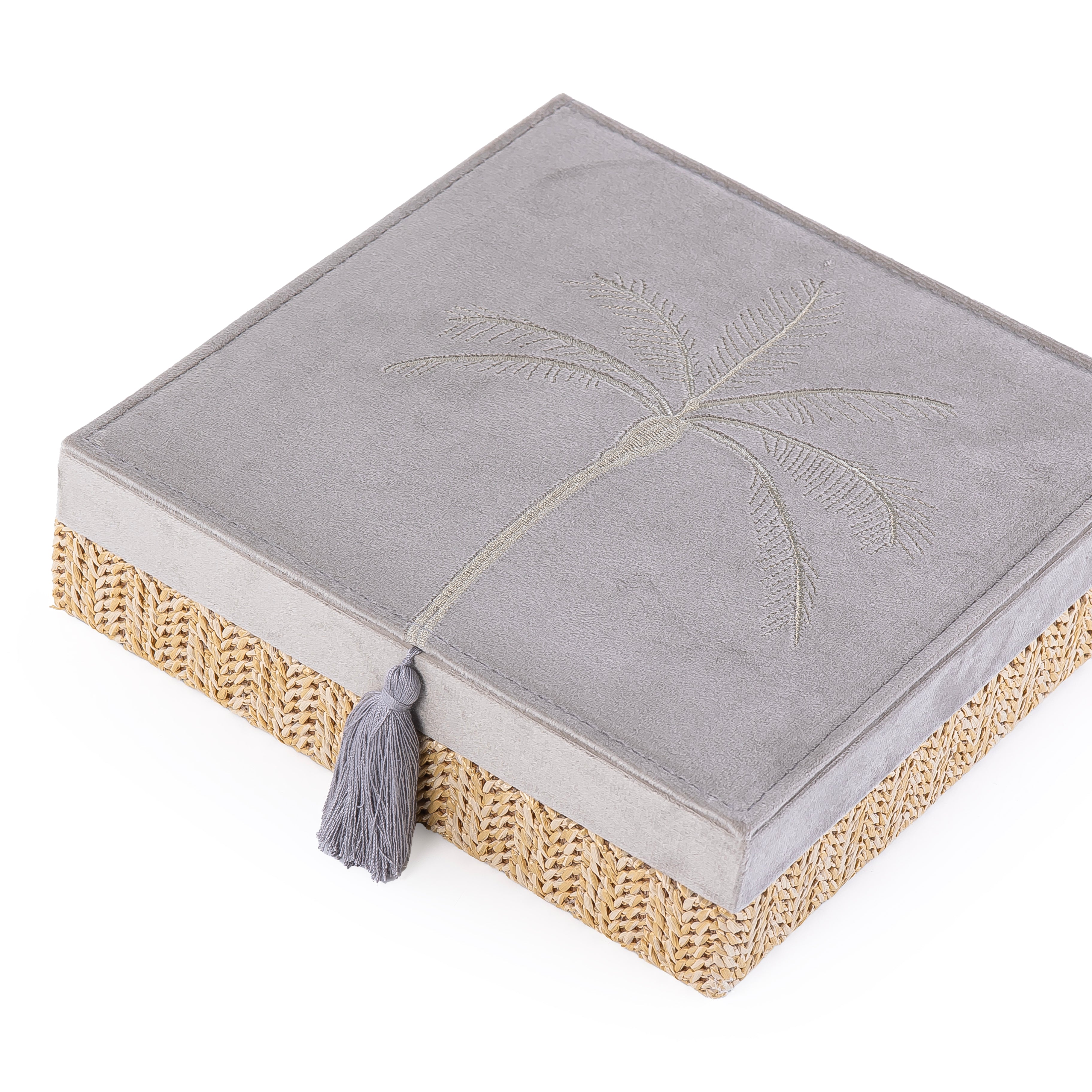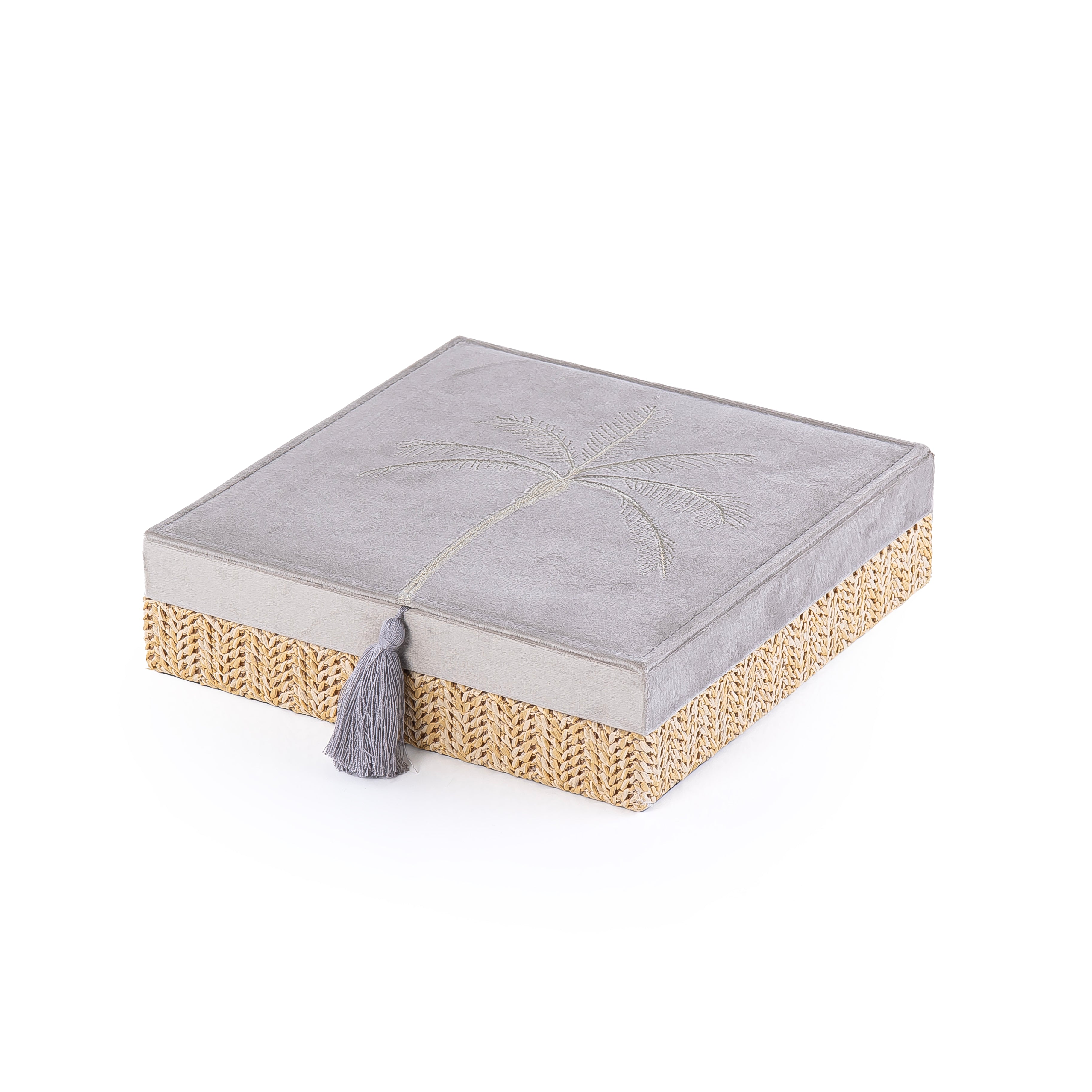 بوكس مجوهرات مربع من الراتان مع غطاء – رمادي