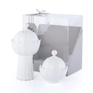طقم مكون من مبخر و وعاء سيراميك مع بوكس هدايا - أبيض