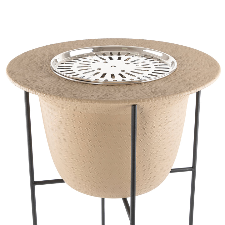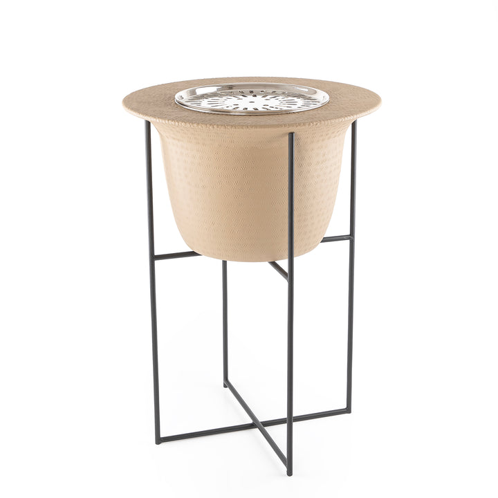 حافظي على دفئك في الليالي الباردة، ووفري إضاءة ناعمة وأجواء مريحة، باقتناء هذه الدوه المعدنية العملية و مثالية  للاستخدام في الحديقة، بالاضافه الى استاند معدن ويمكن تنظيفها بسهولة بعد كل استخدام.