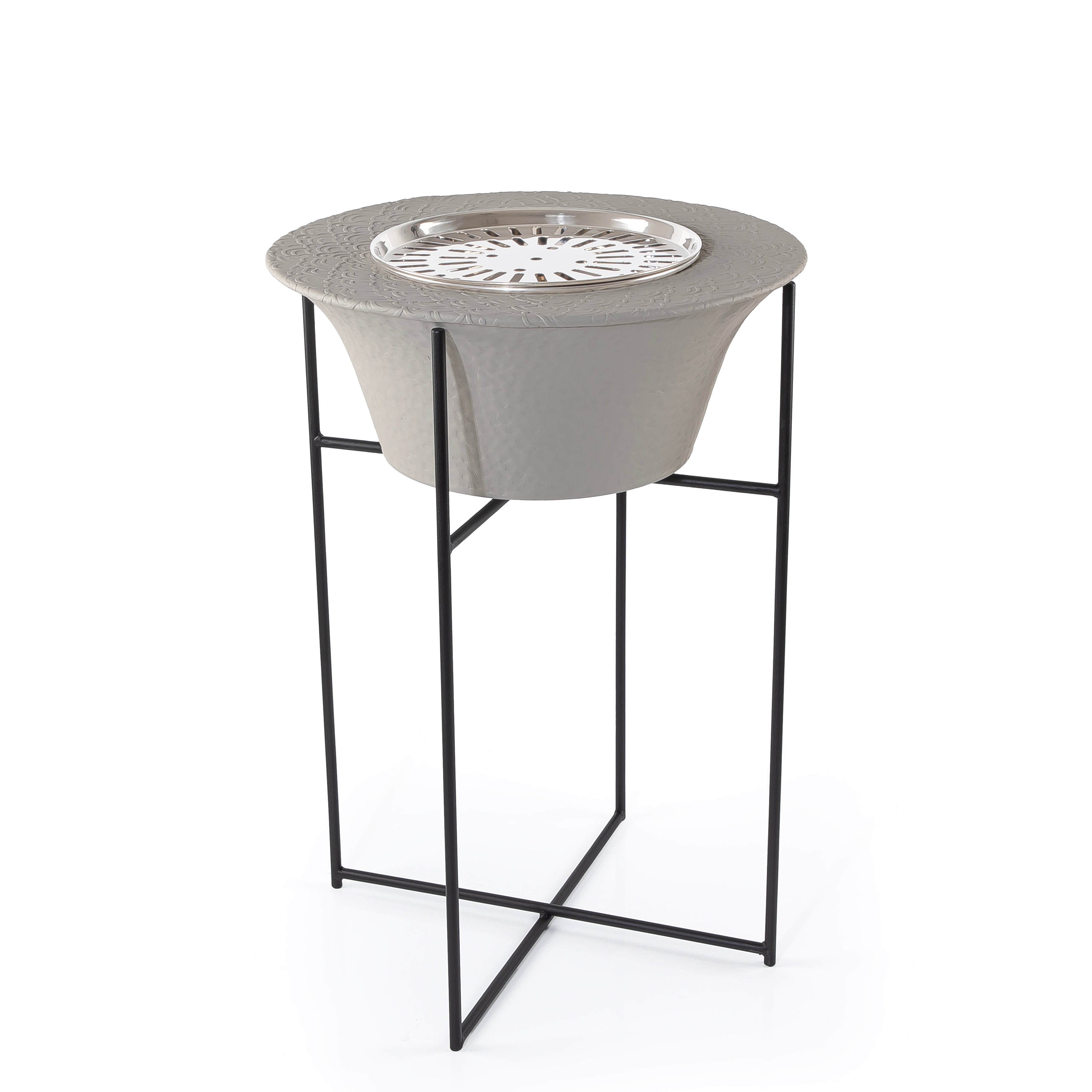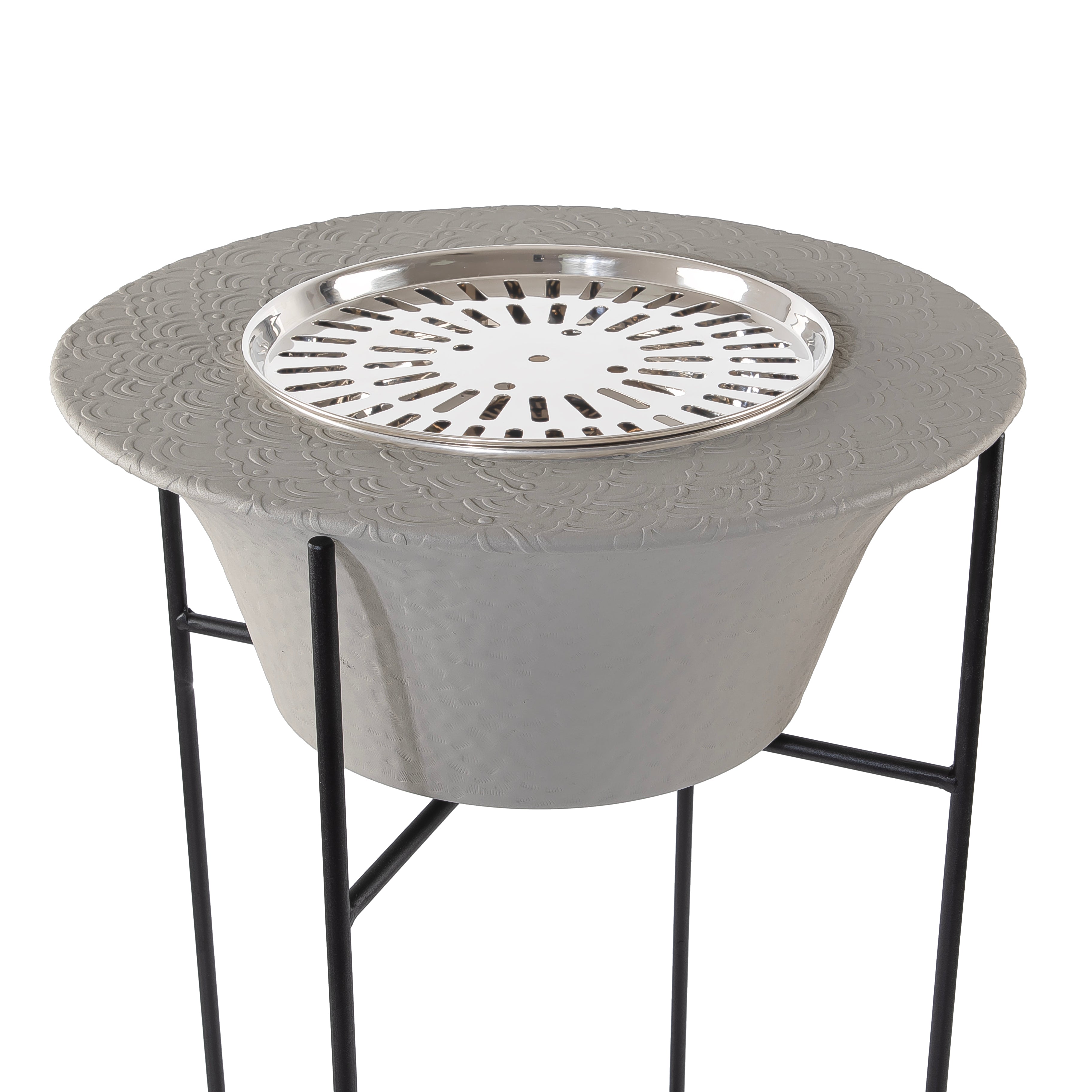 حافظي على دفئك في الليالي الباردة، ووفري إضاءة ناعمة وأجواء مريحة، باقتناء هذه الدوه المعدنية العملية و مثالية  للاستخدام في الحديقة، بالاضافه الى استاند معدن ويمكن تنظيفها بسهولة بعد كل استخدام.