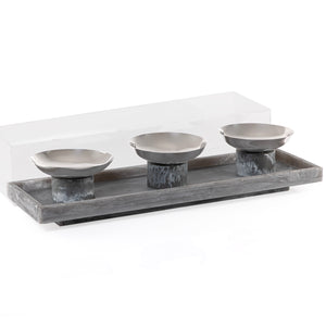طقم مكون من 3 أوعية تقديم صغيرة باللون الرمادي على صينية مع بوكس هدايا