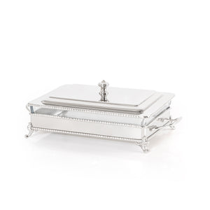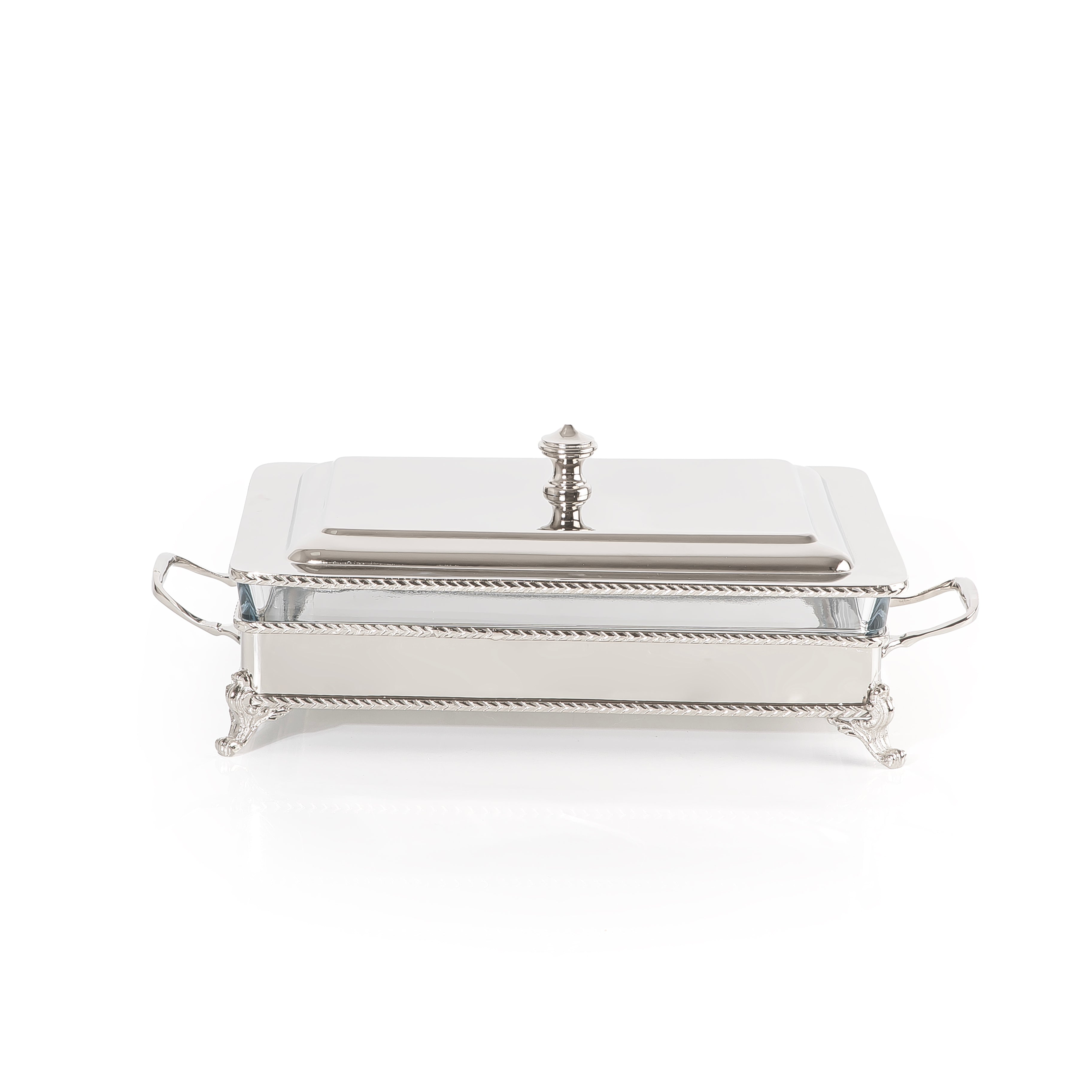 أضف لمسة من الأناقة والعملية إلى مائدتك مع سخان الطعام المستطيل المصنوع من الستانلس ستيل الفضي، والمزوّد بوعاء زجاجي داخلي قابل للإزالة لسهولة التقديم والتنظيف.