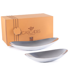 طقم 2 أطباق تقديم بيضاوية من المعدن مع بوكس هدايا - فضي