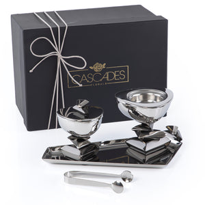 طقم مبخر معدني فاخر مكوّن من 4 قطع مع بوكس هدايا – فضي / أسود