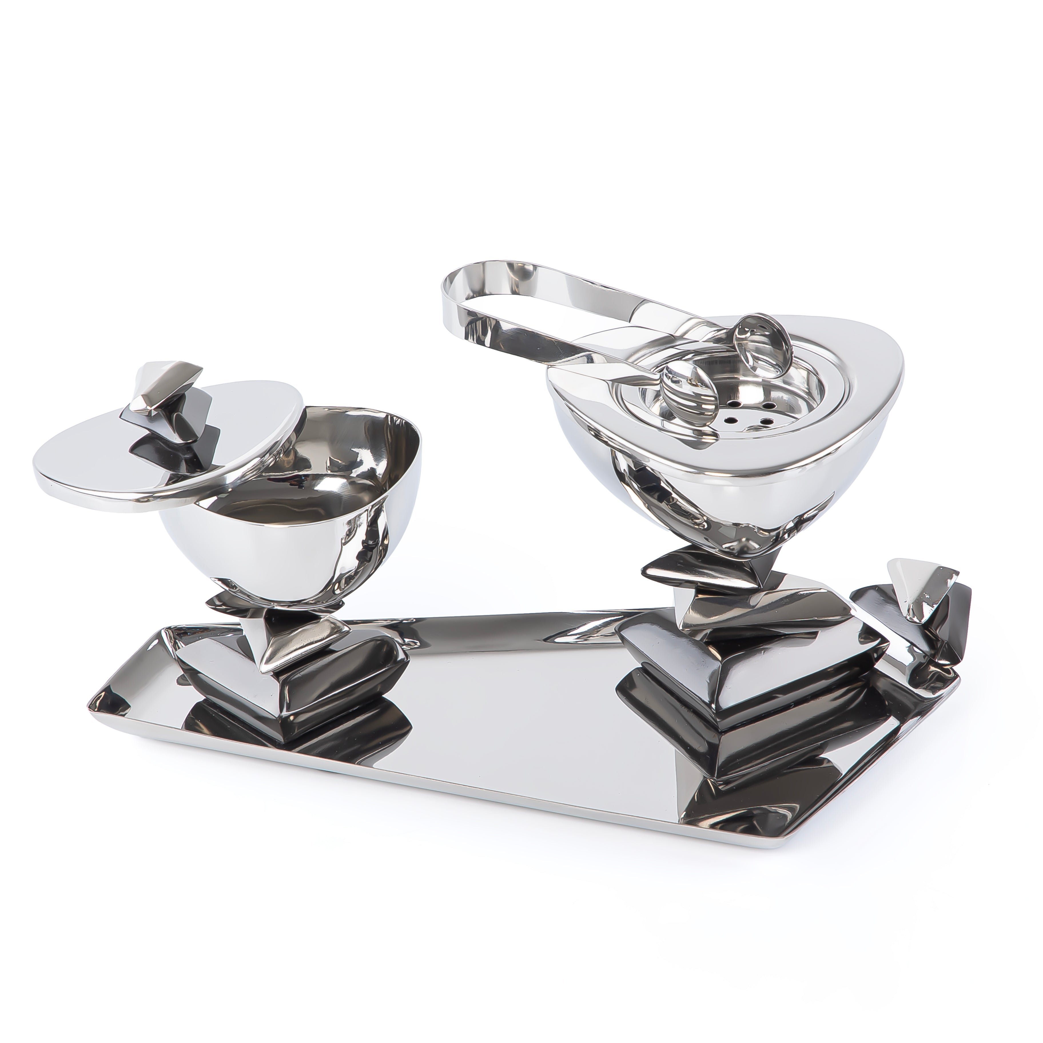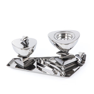 طقم مبخر فاخر مصنوع من المعدن عالي الجودة، بتصميم أنيق باللون الفضي. يأتي في علبة هدايا فخمة ويضم 4 قطع مثالية للضيافة والاستخدام اليومي أو كهديّة راقية.