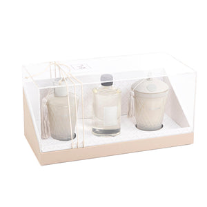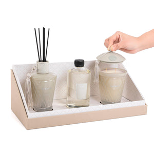 مجموعة لا سيرفا تتكون من موزع روائح عطري سعة ٢٠٠ مل مع شمعة، داخل علبة كرتونية بغطاء أكريليك.