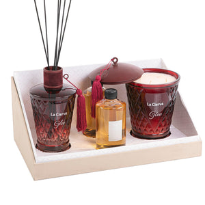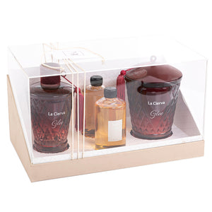 مجموعة لا سيرفا التي تضم موزع روائح عطرية سعة 650 مل مع عطرين مختلفين وشمعة، داخل علبة كرتونية بغطاء أكريليك.