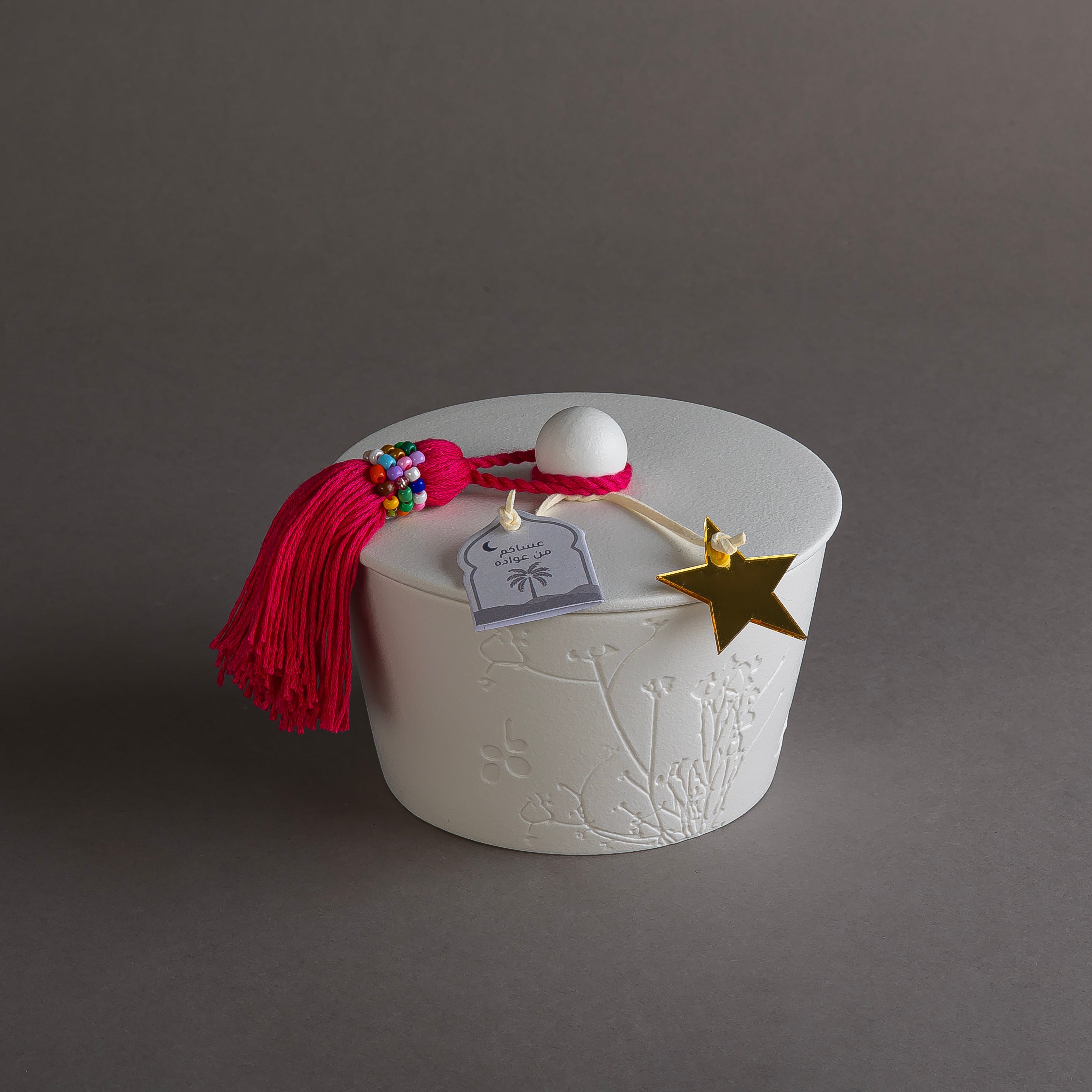 نقدم لكم وعاء القرقيعان الخزفي - الإضافة المثالية لاحتفالاتكم المميزة! صُممت هذا الوعاء الخزفي الرائع لحفظ تشكيلة متنوعة من الحلويات والشوكولاتة، ليضفي لمسة من الأناقة والفخامة على مناسباتكم. صُنع هذا الوعاء بعناية فائقة بالتفاصيل، وهي الطريقة الأمثل للارتقاء بضيافتكم.