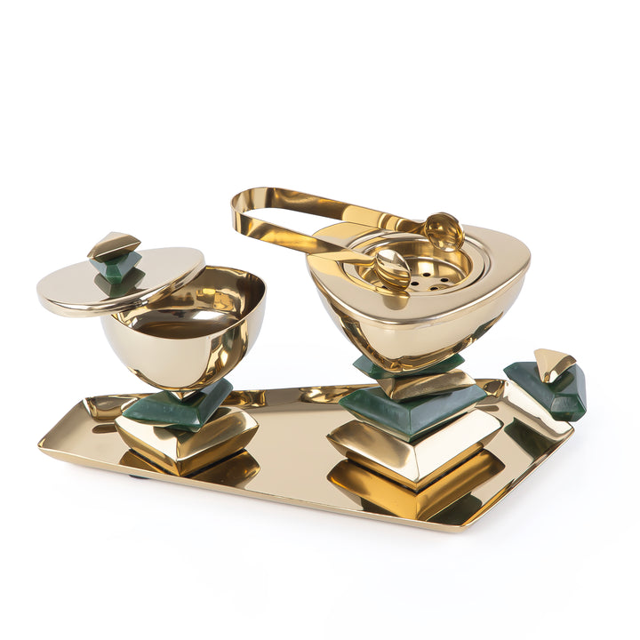 طقم مبخر معدني فاخر مكوّن من 4 قطع مع بوكس هدايا – ذهبي