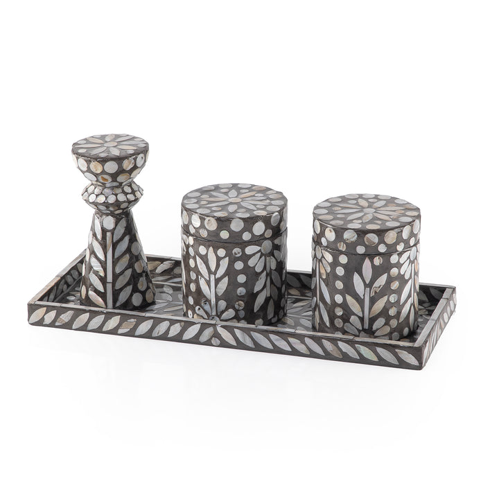 طقم صدف (2 جار، قطعة ديكور، صينية) - رمادي