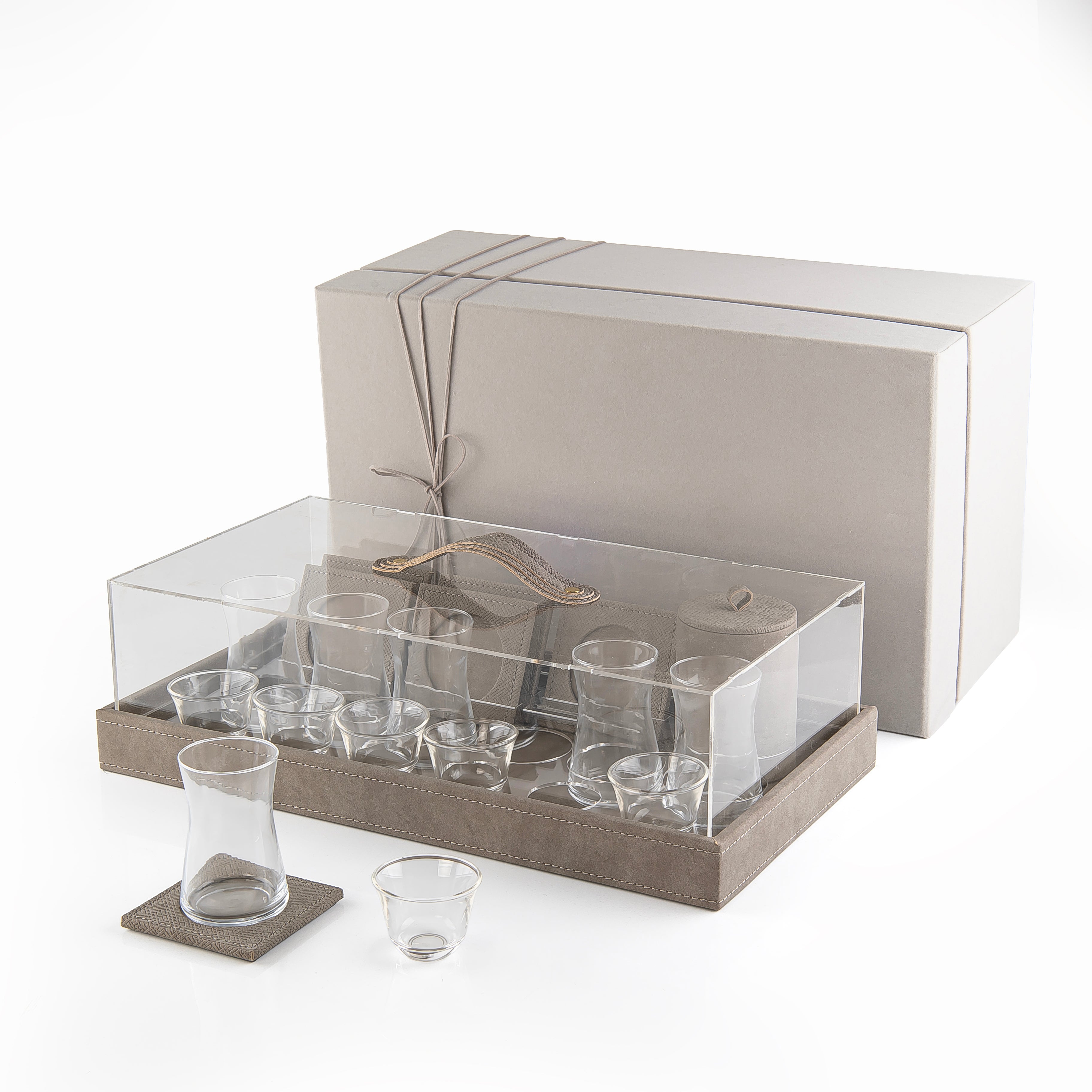Home Set of Cups and Coasters with Leather & Acrylic with Gift Box - Grey