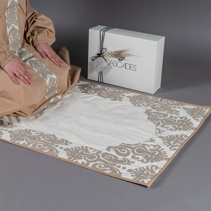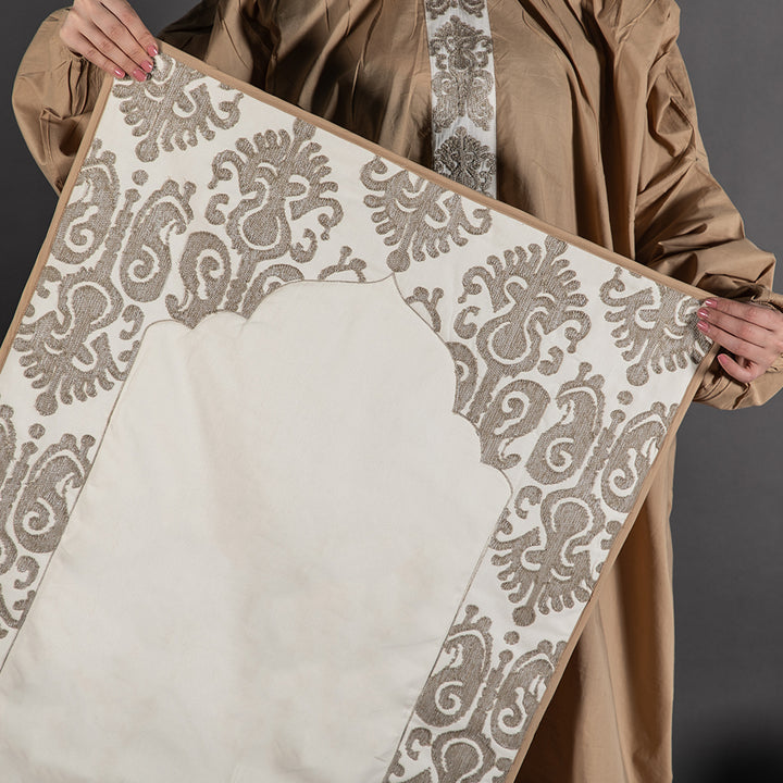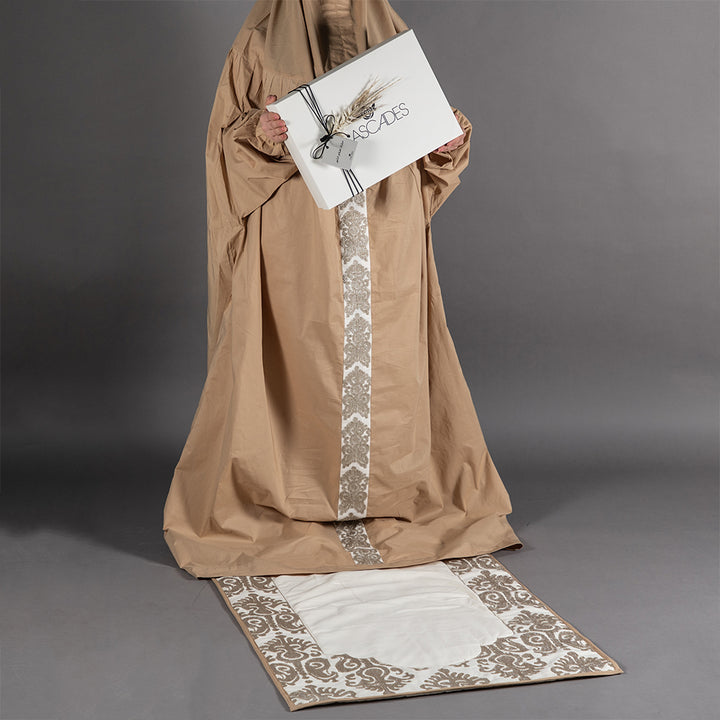 This prayer dress is made from premium 100% fine cotton fabric, offering exceptional comfort and breathability for your prayers. Adorned with exquisite embroidery, it exudes elegance and grace. The set also includes a beautifully coordinated prayer mat, crafted from fine cotton fabric. Featuring delicate embroidery, contrast piping along the edges, and soft polyfill wadding, the mat provides extra comfort and support for a peaceful prayer experience.