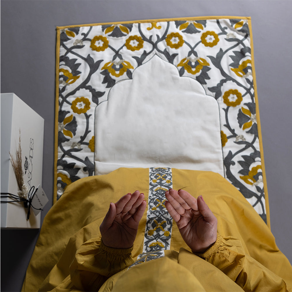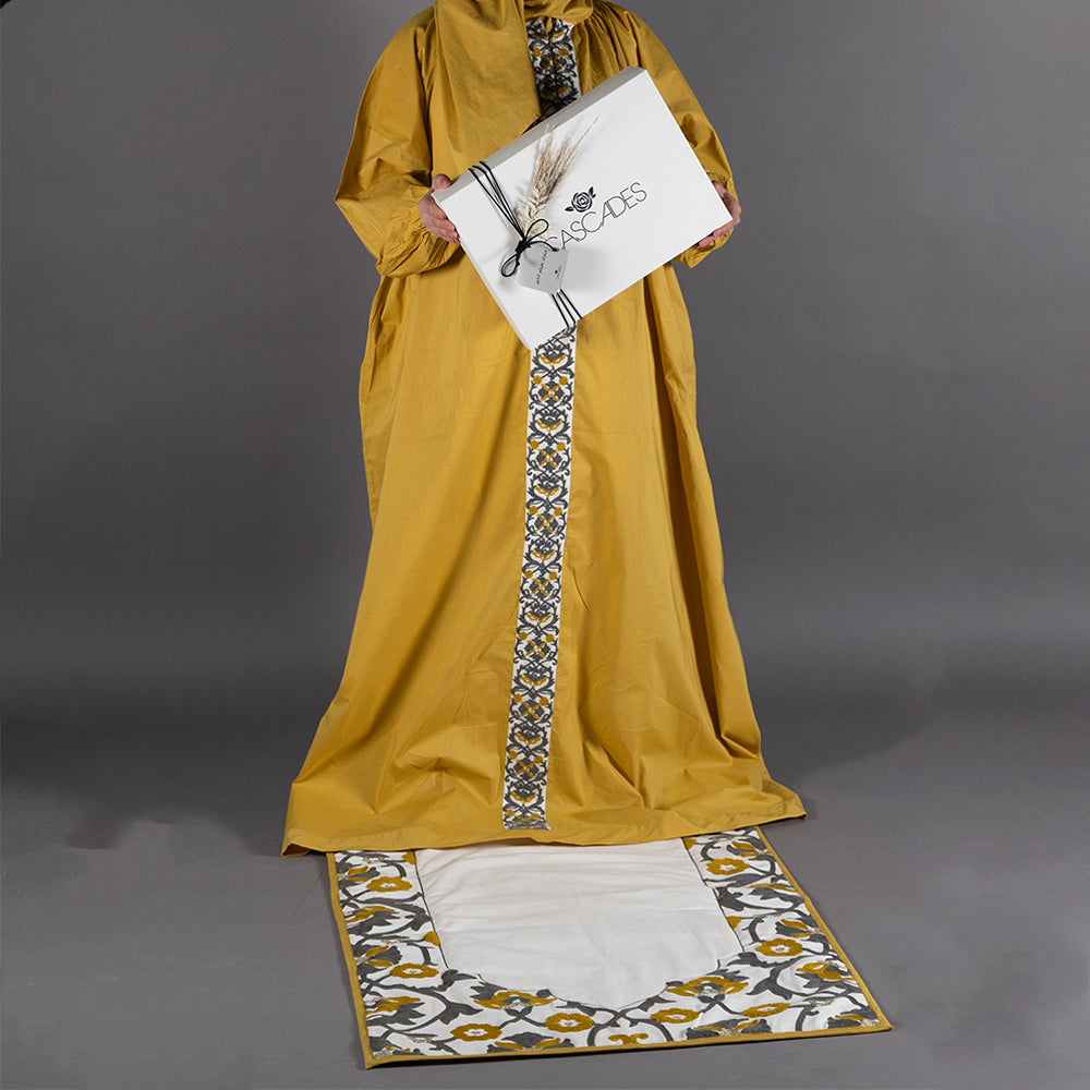 This prayer dress is made from premium 100% fine cotton fabric, offering exceptional comfort and breathability for your prayers. Adorned with exquisite embroidery, it exudes elegance and grace. The set also includes a beautifully coordinated prayer mat, crafted from fine cotton fabric. Featuring delicate embroidery, contrast piping along the edges, and soft polyfill wadding, the mat provides extra comfort and support for a peaceful prayer experience.