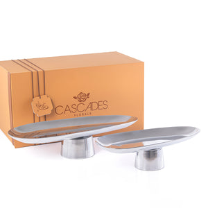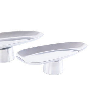 Set of 2 Oval Metal Serveware Stand - Silver
