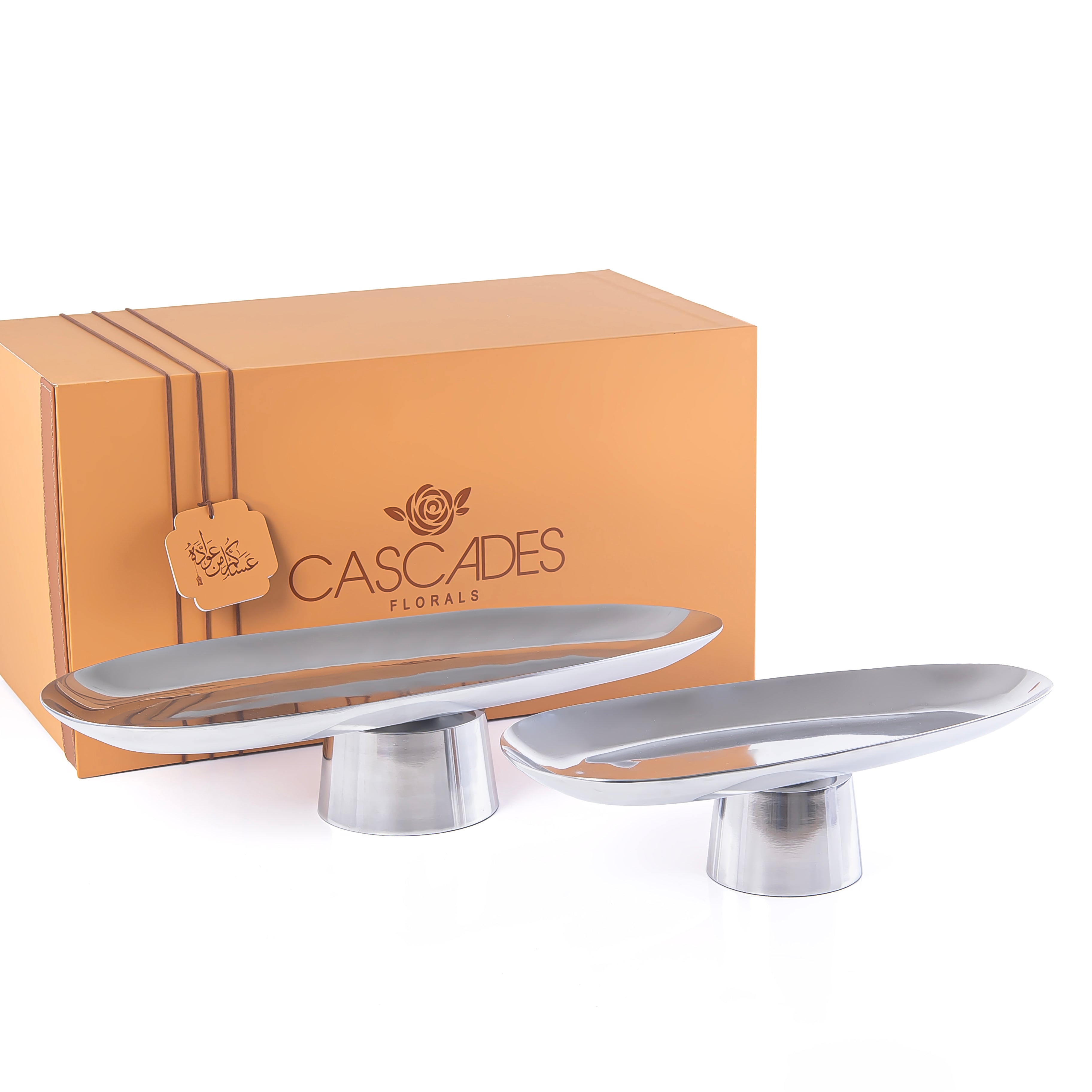 Elevate your table presentation with this refined set of two metal oval serveware stands. Crafted with meticulous attention to detail, each piece blends timeless elegance with practical functionality. Perfect for displaying appetizers, desserts, or decorative arrangements at formal dinners and special occasions. The sturdy metal construction ensures lasting durability, while the sophisticated oval silhouette complements any upscale dining aesthetic—a versatile and essential addition to your entertaining collection.