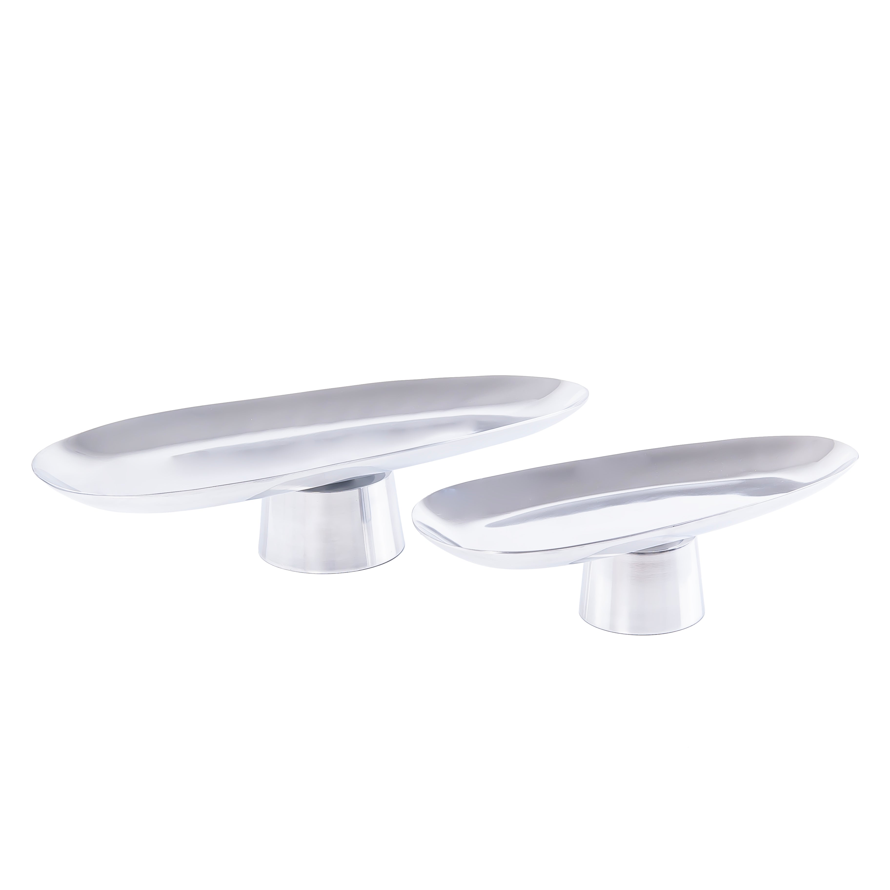 Chose the option: Set of 2 Oval Metal Serveware Stand - Silver