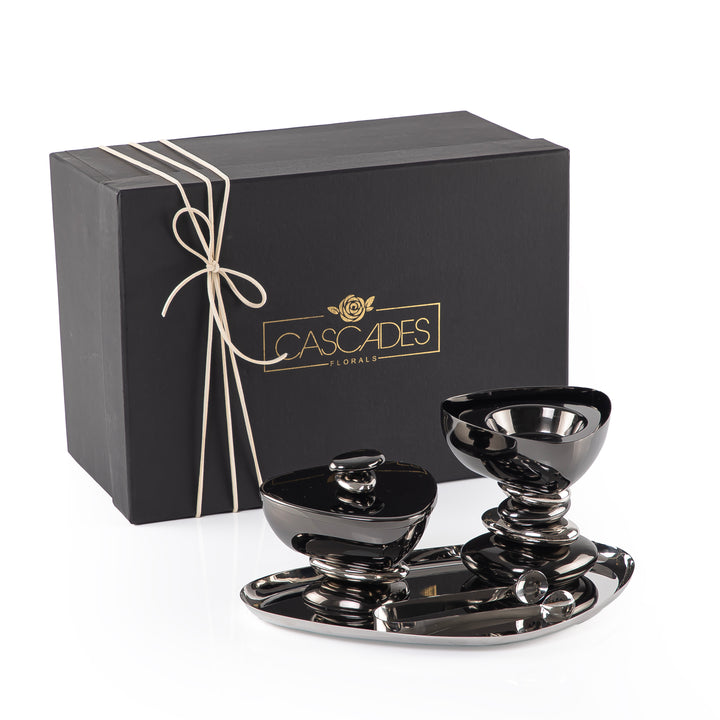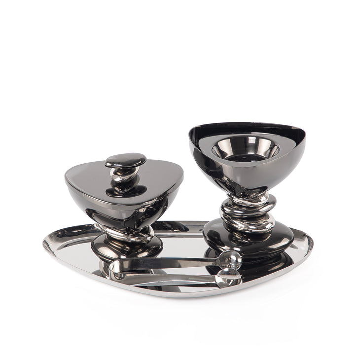 Metal set of 4 mabkhar with tray, bokhor box & tong with gift set