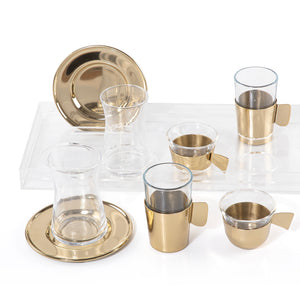 Upgrade your serving experience with this elegant Tea & Coffee Glass Holder Set, beautifully arranged inside a premium transparent acrylic box.
