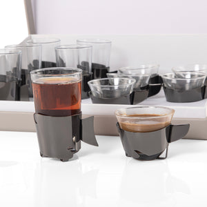 Set of 12 pcs tea and coffee cups with gift box - black