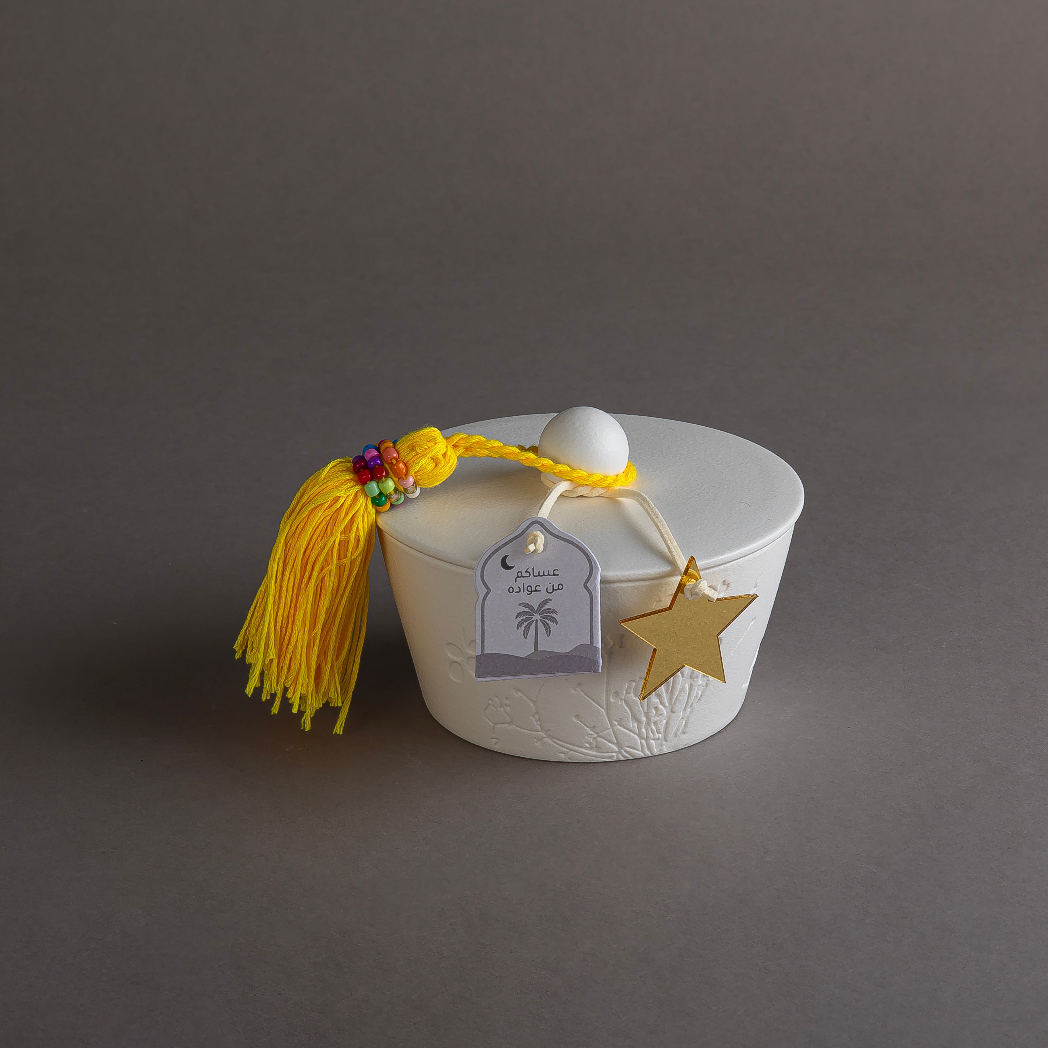Gergaan Matt White Bowl With Tassel - Yellow