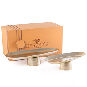 Set of 2 Oval Metal Serveware Stand With Gift Box - Gold